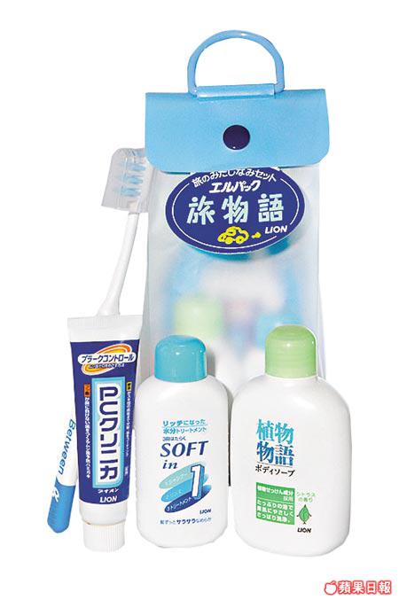 獅王的旅行套裝,內附沐浴露(90毫升)、3合1洗髮水(60毫升)、牙膏(40克)及牙刷。沐浴露含有淡淡的香氣,讓你沐浴後精神為之一振。