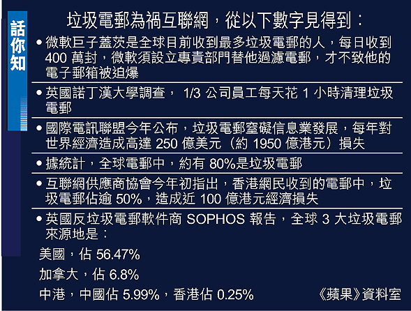 美國一間互聯網服務供應商入稟法院,控告三百間濫發垃圾電郵的公司。艾奧瓦州地方法院上周五判決其中三間公司向該供應商合共賠償約八十四億港元,相信是歷來懲治垃圾電郵寄發者的最大筆罰款。