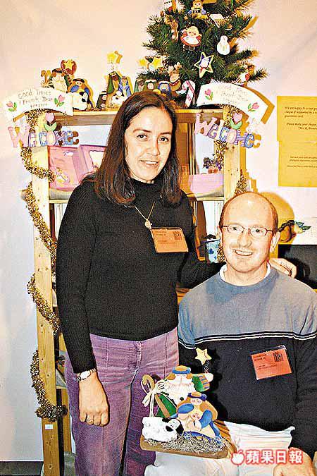 木板掛飾由Ian及RosyBrown(圖)親手製造,板上的語句可按顧客要求印上,售價85港元起。