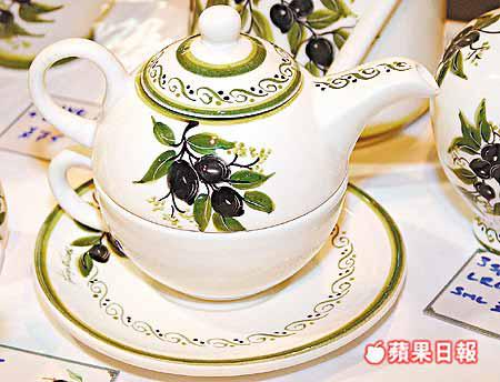 製造希臘傳統陶瓷產品已有200多年歷史的Hatziyannis家族,至今每件產品仍是由人手逐件製成及繪上圖案,圖中茶壺連茶杯套裝約售650港元。
