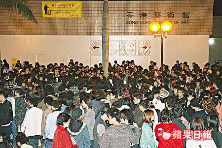 平安夜聖誕歌聲響遍尖沙嘴,在文化中心人潮中有人失控推倒鐵欄及噴人造雪,一度出現混亂,幸警方迅速控制場面,警方在凌晨三時開始清場,康文署及食環署人員隨即進行清潔工作,直至早上七時許才告結束。