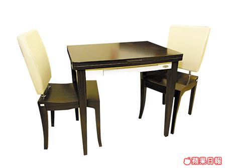 屋企只得兩口子的話,呢張胡桃木紋的餐枱套裝就最適合。一套包兩張椅,將開合餐枱伸延後成47吋長,請多兩個朋友一齊坐就啱啱好。