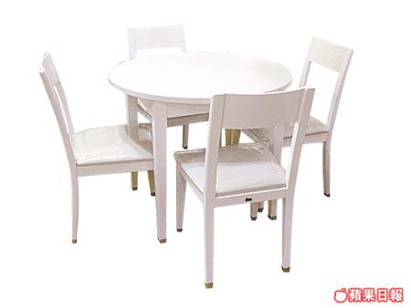 Lugo圓形開合枱,圓枱可減低小童碰傷的機會,配以4張備有軟墊的餐椅同白色設計,顯得家居整潔及純樸,但清潔工夫就絕不可以馬虎了!