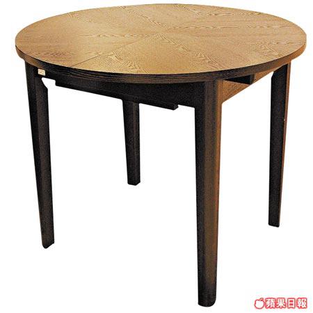 無論屋企人多或人少,圍埋一枱食飯氣氛就最融洽。髹上深色胡桃木的圓形水曲柳木餐枱,開合設計夠慳位,層板收藏於枱中間,擴大後足夠6人使用。