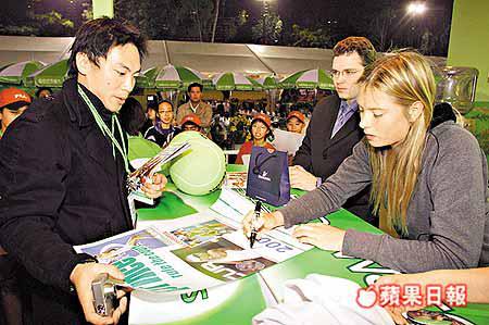 雖然肚子不適,但舒拉寶娃昨午如常到維園出席網球示範,穿得密實的她途中也有咳嗽,但仍落力指導本港小球手打波,還不時拍掌以作鼓勵。但不足一小時後,她在記者會上交代身體狀況時說:「我昨(前)晚深夜二時胃部突感不適,像有點感冒,於是找來酒店醫生診斷。我想跟酒店膳食無關,可能是前幾天已開始有感冒引致。今(昨)早起來,全身乏力,連練習的氣力都沒有,覺得用這種狀態出場比賽,像是欺騙球迷,所以決定退出。」
