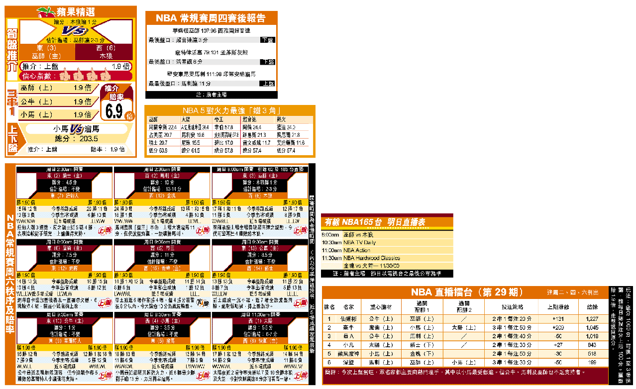 該隊現時平均每場攻入聯盟第六高的一百零一分,較上季的九十一點八分,急升了九點二分,其中三名主將:控衞阿蘭拿斯、得分後衞曉士及大前鋒占美臣更是巫師的火力「發電機」。三人合力平均砍下六十三點八分,成為今季攻力最強的鐵三角,連「一哥」太陽的「三劍俠」A史杜達米亞、馬利安及尼殊也望塵莫及(見附表)。