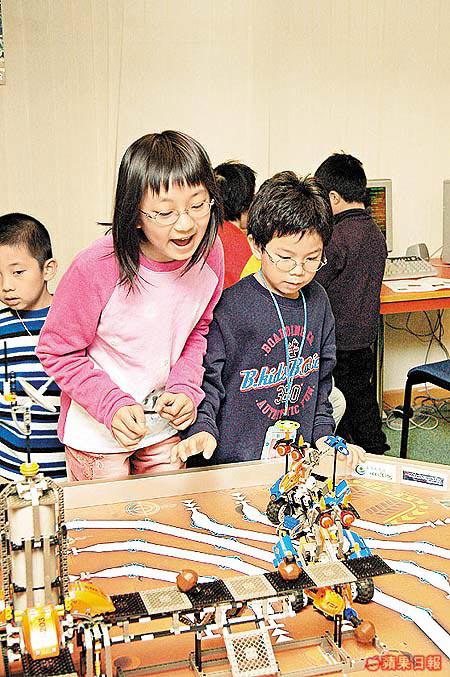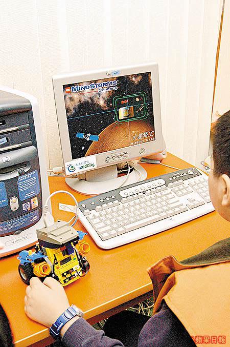 ■每組親子組別都有一台電腦,「火星特工」的一切指令、四款機械人BB的功能、編寫電腦程式等,全部靠晒佢!圖中機械人BB上面的紅外線發射器,就係連繫電腦程式和機械人動作指揮的重要配件。