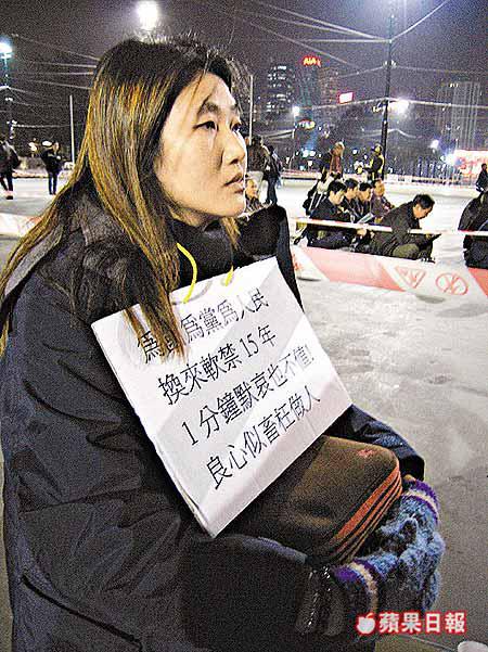 葉小姐(民主活動常客):「趙紫陽為國為黨為人民,換嚟軟禁十五年。立法會默哀一分鐘,范徐麗泰同某的議員都反對,真係冇良心,唔係人。」