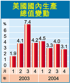 商務部公布,美國國內生產總值(GDP)增長從去年第3季的4%,放緩至第4季的3.1%,遜於市場估計的3.5%,是2003年首季至今最差。在去年全年該國GDP增長4.4%,遠勝03年的3%,為1999年以來最大升幅,以年率計達到11萬億美元(約85.8萬億港元)。
