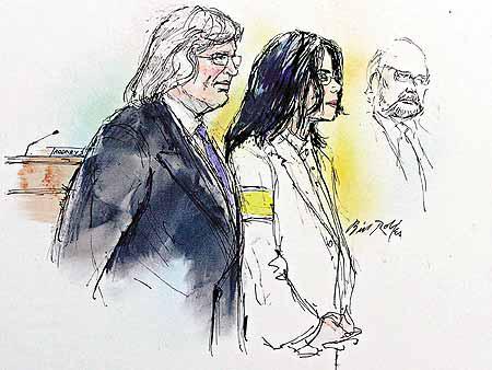 他一身白衫白褲,似乎是要用代表純潔無邪的白色向世界宣稱:我是無辜的。他本來還戴着一個寫着777數字的臂章,777是猶太人象徵純潔和愛神的數字,但由於檢察官指可能影響陪審員,他要在入庭前除下來。