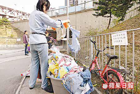 【本報訊】政府在農曆大除夕前整頓市民任意在公眾地方曬晾衣物損毀市容的問題,昨日路政署人員巡經將軍澳健明邨對開路邊,發現情況仍然嚴重,於是將百多件衣物收拾放置於收集桶內等候認領,卻因衣物堆積如山,部份衣物棄跌於地面,惹來一批曬晾衣物市民不滿,包圍路政署人員發生爭執。 記者:林榮海