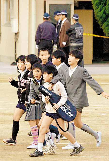 日本西部大阪一間小學昨午發生「大逃殺」事件。一名十七歲少年闖入自己曾就讀畢業的小學,他手持一柄二十一厘米長的刺身用菜刀,刺傷一男兩女教職員,男教師送院後證實死亡。校園翻血浪,校內六百名小學生立即集體「大逃殺」,但少年行兇動機未明。