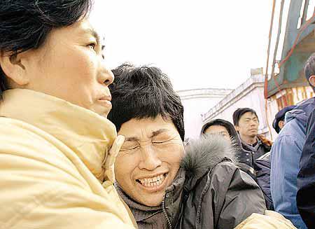 「放開我!我爸都沒有了!」遼寧阜新孫家灣礦難已經發生了三日,昨日仍有大批家屬在煤礦公司門外苦候遇難礦工的消息。有家屬不滿當局三日以來對他們不聞不問,既不通知他們家人遇難的消息,也不告訴他們救援的進度,因而聚集在煤礦公司門外,聲嘶力竭地大聲呼喊,要求當局解釋,叫聲淒厲,響遍山野,更有幾十名家屬傷心過度而要住院留醫。