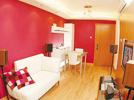 因為地方有限,江小姐認為客飯廳應有更大的空間感,客飯廳沒有架床叠屋式的大型家具,除飯枱外,所有家具都盡量以座地、貼牆、矮身為主,以入牆LCD電視加座地音響組合代替硬邦邦的電視櫃,鞋櫃、雜物櫃及酒櫃三合一的迷你地櫃代替傳統組合櫃,所以第一眼望客飯廳,已給人特別通透的感覺,加上柔和燈光和牆身顏色的配搭,襯托出的空間感亦特別強。