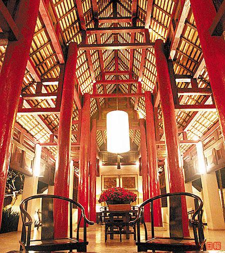 離開皇宮,車子駛進四合院去,那其實只有兩層高,極似四合院的泰式酒店,大廳對住庭院,三邊都是廂房,全店的家具都是來自中泰的古董,手感特別,加上瓦頂磚牆,像時光倒流五十年,房門是用門檻,衣櫃不用鎖,只要髮簪一穿便關好,晚上在庭園散步,人字屋頂懸着大燈籠,透過竹節的木條,隱隱窺見情侶在沙發談心,沒有華麗的感覺,但跟生活更貼近,享受平淡的樂趣。