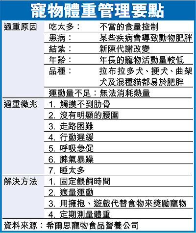 根據希爾思寵物食品營養公司在美國的一項調查顯示,七成半寵物主人相信自己的寵物體重剛剛好,但實際上,超過一半的貓、狗是過胖。