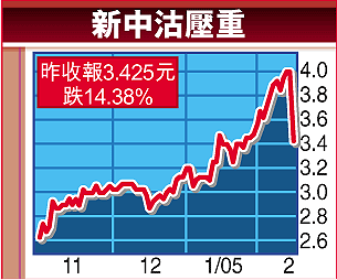 另外,新中擬2供3股集資,每股供股價2.8元,該股昨日復牌收市報3.425元,跌14.38%,全數包銷的新世界則報7.95元,跌1.24%。兼任新中主席兼董事總經理的鄭家純表示,新世界現時可動用現金約90億元,即使全數包銷新中供股股份,日後亦需配售有關股份維持公眾持股量,估計新中透過供股會有18億元資金流入,未來8個月又會有約40億元出售泓都的資金回籠,而旗下新創建(659)出售貨櫃碼頭也會為集團提供收益。