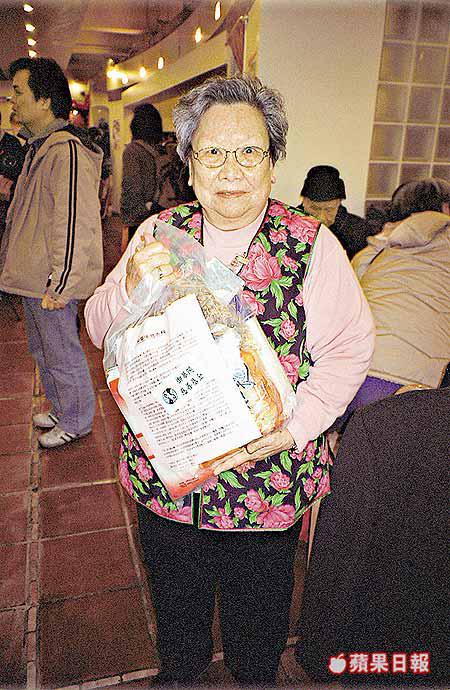 七十五歲的潘婆婆本身靠綜援金生活,平日多數粗茶淡飯,甚少到酒家用膳,當晚難得與「老友記」聚首一堂,歡度新春,她感到十分興奮。「我今晚真係好開心,有得食有得拎,多謝蘋果基金嘅贊助,我希望年年都有份參加啦!」