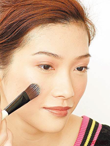 塗粉底:傳統上會用手指或海綿來上粉底液,不過前者會妝容太厚、後者則太薄,用掃來上粉底液就最適中。