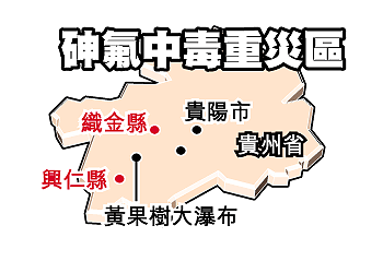 中國科學院貴陽地化所研究員鄭寶山稱,貴州西南地區自一九七六年以來,確診的慢性砷中毒病者至少有三千人。該所曾用普通煤和含砷煤,將玉米烘乾一星期,然後讓小老鼠吃玉米。結果,吃普通玉米的老鼠健康成長,相反,吃含砷玉米的老鼠在十五天內全部死亡,並出現明顯的腸道、肝臟及腎臟損傷。