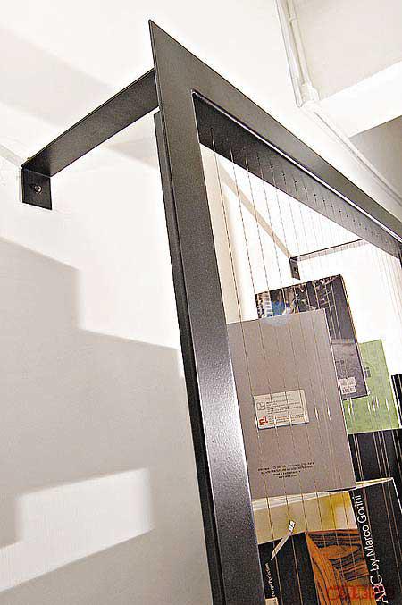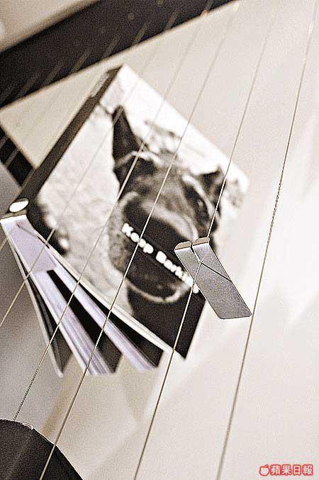 比利時設計名家Hoet出品,作品名為「LIBRARYPAT」,由PatrickHoet、BiekeHoet及TiVandenbroucke共同操刀而成。其設計一反傳統書架造型,外形使人聯想到優雅的豎琴。質料安裝方面,黑色金屬外框須用螺絲固定在牆上,中間的「弦線」則以不銹鋼製成,「弦線」上的不銹鋼小夾子就是書托,堅固穩定地凌空「掛」起書籍,造成空間感強烈的視覺效果,說它本身是件裝置藝術也不為過!擺放書本數量不多,但其創意及有型度已值回票價。