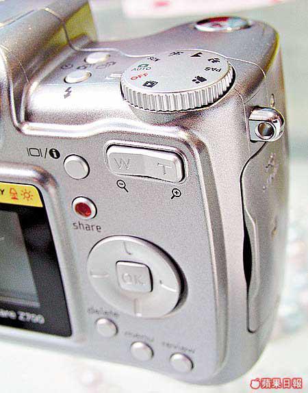 柯達早排出咗部Z740抵玩10倍變焦DC,同期重有款細佬版Z700,規格上較為低階。外形明顯細過Z740,具有400萬像素CCD,焦距亦縮至5倍光學變焦,機背控制桿亦變成四方掣,可惜手感就真係一般。最值得一讚都係電池,只係用兩粒2A電,比其他機用4粒筆芯電真係方便易買得多!同Z740一樣,Z700都係會以連PrinterDock套裝出售,以$2,990呢個價錢又有DC又有Printer,都算抵玩咯。 記者、攝影:劉耀祥 KodakHK(800901514)