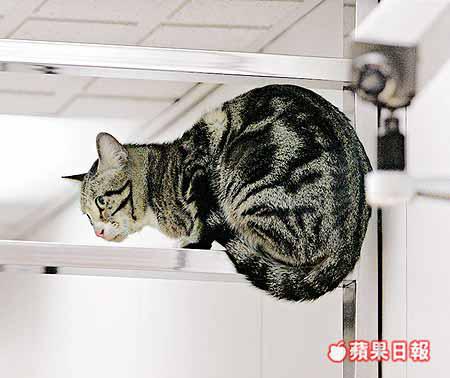 【本報訊】一隻懷疑飢腸轆轆「為食貓」,昨早上十一時許,竄入西環皇后大道西一間金飾表行,跳上飾櫃防盜鐵欄上盤踞不去,虎視眈眈及覬覦職員午飯餸菜,疑欲分「一杯羹」,職員無計可施報警。 警員到場後驅之不去,惟有向愛護動物協會求助。愛護動物協會兩名人員到場用網前後夾攻,「為食貓」瞬即變成「網中貓」被捉走。其間,店舖職員仍如常用膳,未有受到貓兒滋擾。