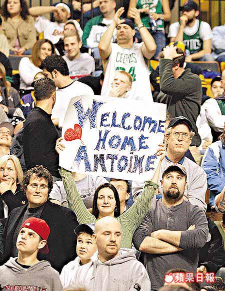 波士頓塞爾特人的「八號員工」終於回到老家!闊別了一年多後,獲加周三隨完成四場征戰的塞爾特人,回到主場館迎撼洛杉磯湖人。這名前鋒不但助塞軍以一百○四比一百○一擊敗湖人,自歸隊以來連勝三仗,還獲新人艾爾謝菲遜贈送了一件大禮──他的八號球衣。