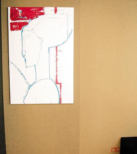除運用膠板做家具外,設計師還注重一屋的用色。全屋以灰、白、杏等素色為主,在小小的飯廳,餐枱下加了張淺灰色地氈,簡約得來令整體感覺不致太單調;牆壁顏色暗藏玄機,看似單一,其實是用了多種類近的顏色去貫徹一體化之感,如飯廳與客廳之間,就巧妙地以運用了兩色,來凸顯牆上的掛畫。