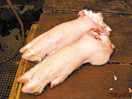 1.豬腳去毛洗淨斬件,出水後洗淨。