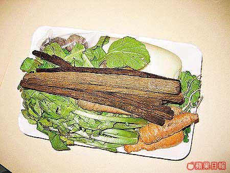 (包括有機牛蒡、紅蘿蔔、蘿蔔苗、白蘿蔔及冬菇乾,加水齊煲1小時,對治療高血壓及風濕痛症等有幫助)
