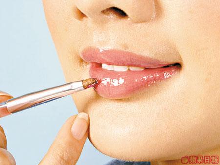 5.塗上淡紅色唇彩,再在唇的中間位置加一層金色唇彩。