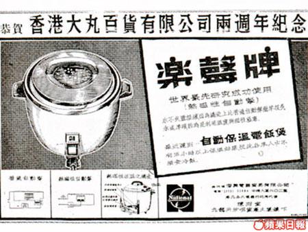 六十年代——因要切合中國人的習慣,蒙民偉要求日本設計了這款玻璃蓋電飯煲。
