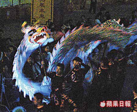 【本報訊】每年農曆二月十三是紀念海神洪聖的洪聖誕,昔日會有大型的舞龍舞獅活動以示慶祝,但隨着洪聖廟在二十年代由深水埗搬往大角嘴後,活動已擱置多年。為延續慶祝洪聖誕這傳統,旺角街坊會昨舉行「大角嘴廟會」,以中國的變臉絕技(圖一)、舞獅、蒙古摔跤表演,以及舞動五百呎長的夜光龍(圖二),以重拾昔日慶祝洪聖誕的熱鬧境況。 此外,該會今、明兩晚會在大角嘴演出兩場粵劇,免費招待坊眾。 黎樹雄攝