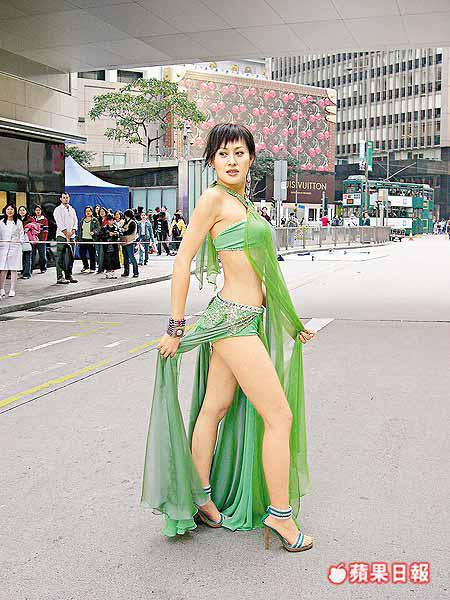 江欣燕昨日以代言人身份在中環遮打道行人專用區為貴族纖形拍攝廣告,一身低胸短裙打扮的她被吊威吔在半空中擺出不同甫士,吸引一班假日在中環聚集的菲籍女傭圍觀。