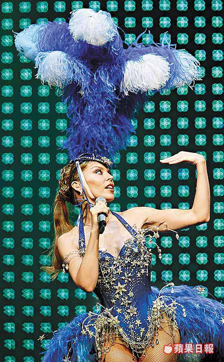 Kylie為準備個唱,早前戴上特製腰封,務求紮出十六吋黃蜂腰,前晚她甫出場即穿上價值四百二十萬港元、以鴕鳥毛製成的corset大唱大跳,展露成果。除了大獻歌藝和舞技外,Kylie更耗資一千四百萬港元搭建舞台,營造特別的視覺效果,據說這亦是史上最大型的戶內演唱會舞台。