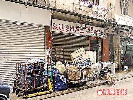 其後,鐵器公司又將鐵器及其他雜物擺放在門外行人路,日前,附近居民再向本報投訴,指鹿鳴街行人路又被鐵器公司擺放大量木卡板、手推車及廢鐵等雜物,堵塞行人路。