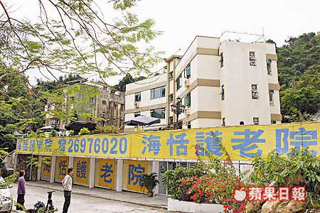 爆發腸胃炎的海恬護老院位於大埔公路馬料水段,院舍是一幢三層高別墅式設計的建築物,可容納院友六十八人。由於位處九肚山腳,環境清幽、空氣潔淨,故有「貴族老人院」之稱,入住院友月費由六千八百至一萬五千元不等。