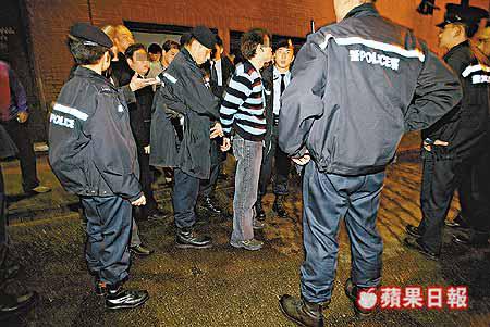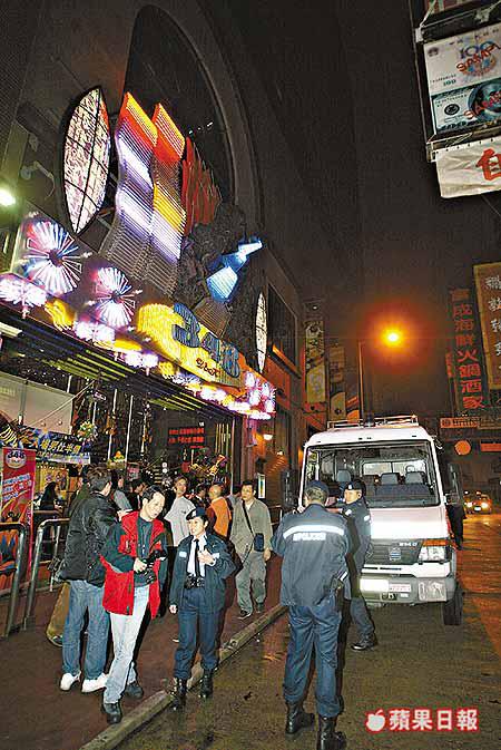 昨凌晨四時許,油麻地分區警署刑事偵緝處人員聯同警方機動部隊B2連數十名警員到彌敦道與西貢街交界的348的士高查牌,其間有顧客暗中從後門溜走,警員發現立即阻止,並與多名自稱的士高職員發生衝突。