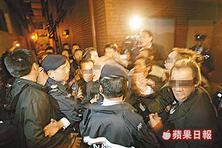 當警員拘捕其中一名吵鬧的男子時,立即引起在場人士哄動:「又唔係犯,做咩落孖葉(手銬)呀?」數名大漢衝上前,手指指罵警員,幾乎胸碰胸、手指快指到警員的鼻子上,充滿火藥味。警方即時用手提攝錄機拍攝整個過程,自稱的士高職員亦不甘示弱反拍攝。混亂中雙方各有一人先後被推跌。