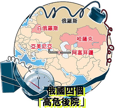 白俄羅斯不是俄羅斯唯一「高危後院」。分析家認為,明年將舉行總統選舉的哈薩克是可能爆發下一場群眾革命的中亞國家,而最高危的高加索區是後年舉行大選的亞美尼亞,阿塞拜疆今年十一月有國會選舉,但人民沒那麼貧窮,不滿相對較輕。