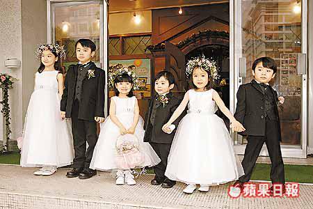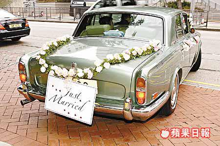 由於新娘子十分喜歡淺綠色,所以昨日一對新人乘坐的勞斯萊斯花車及伴娘及姊妹團的裙子,都是淺綠色。