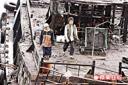 漁船在無人掌舵下漂出離岸二百米的海面,火乘風勢愈燒愈猛烈,整條船瞬間陷入熊熊烈火中,照亮方圓數百米,同時濃煙直衝雲霄,幸風勢向外並未影響岸上的魚類統營處。