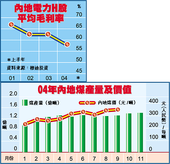 另外,穆迪投資就內地電力市場發表「中國電力生產行業:需求強勁足以支持信用狀況,但高煤價將對盈利能力造成壓力」的報告稱,內地煤炭價格自去年持續飆升,大幅削弱數家H股電力公司的盈利。