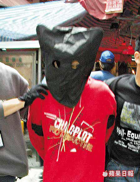 【本報訊】元朗同樂街近日出現怪客當街持利刀揮舞,至昨午一時許,街坊發現持刀怪客在同樂街鴻福樓天台出現報警,大批手持塑膠盾牌警員登樓(圖一),發現一名二十七歲尼泊爾男子橫卧天台,手旁放有十六吋長鋒利西瓜刀,當時疑人並無反抗,警方指他涉嫌藏有攻擊性武器拘捕帶署(圖二)。 陳天華攝