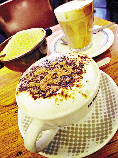 與CentrePlaceArcade相對的DegravesSt.是一眾小巷中最寬敞的一條,不行車的街道上,架起了無數太陽傘,傘下又是一張張金屬椅桌,每當中午時分,附近的大學生或上班一族都會前來用餐,在陽光下鬆弛吓!不過,無論外面天氣如何,DegravesExpressoBar依然保持着微黃昏暗的燈光,木椅桌、皮咕𠱸等殘破得帶點滄桑,卻充滿懷舊味道。我點了一杯Cappuccino,面層的泡沫幼滑無比,咖啡芳香撲鼻,難怪網上的墨爾本指南、Cafe指南、飲食指南等,全將她的咖啡評為上佳之選,看來我真的沒來錯!