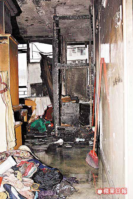 至早上九時十分,街坊發現事主家中冒煙,並見男戶主攀出窗外危坐在晾衫架上,險象環生,於是立即報警及逃生,消防員在四分鐘後趕到現場,當時屋內已濃煙密布,由於單位被反鎖,消防員須破門進入,九時三十三分將火撲熄,單位大部份地方已被嚴重焚毀。