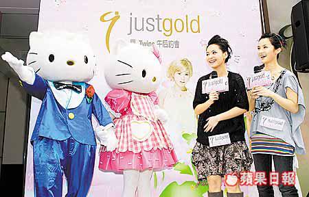 而Twins綵排後,又馬不停蹄往出席首飾剪綵活動。Twins近日成為首飾品牌JustGold和JustDiamond旗下HelloKitty時尚首飾系列的台灣代言人,二人日前戴上該系列首飾拍廣告時,獲廣告商送上價值約四萬港元的限量版HelloKitty鑽石鏈墜。