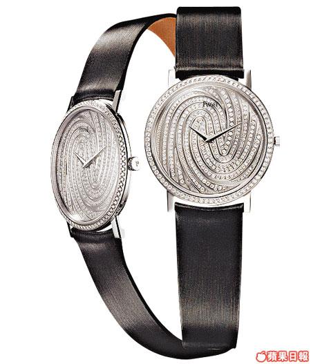 去年叫SecretGarden秘密花園,今年則喚作GardenofSenses感官花園,亦即是聲、味、嗅、觸、視覺此五感。五感又怎樣成為手表設計靈感呢?例如觸覺,Piaget巧妙地把它作指紋手表,以18K白金製作的表殼,表殼鑲上78顆圓鑽、而表盤則鑲上286顆圓鑽,搭載伯爵430P超薄手上鏈機芯,指紋形的表面並裝飾上"CotedeGeneva"日內瓦環狀飾紋。(未定價)