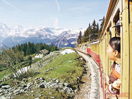瑞士的Interlaken有震撼的雪山外,春天還是賞高山植物的佳期,坐火車望着窗外的動人風光,山腰大片野花在風中搖曳,還有晶瑩雪山做背景,如童話中描繪的一樣,這幅圖畫也只有在瑞士才能碰上。